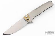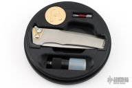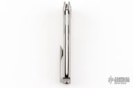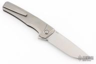 This Sonora by Machine Wise features a stonewashed blade with flipper tab. The handle is bead blasted titanium with a milled integral construction. Button lock open and closure, with L/R reversible tip up clip. Includes original 3D printed box, tool, lube and card. S/N 0017. Excellent condition.