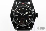 Pre-owned Tudor Heritage Black Bay 79230DK (2013) is a remarkable all-black edition of the famous Tudor Heritage watch. Features include a PVD-coated stainless steel case and bezel, black aluminum bezel insert, black dial, and black leather strap. The white 60-minute graduations on the bezel and luminescent hour markers and hands set against black offer optimal visibility while exuding the stylish aesthetic so many Tudor collectors adore. Outwardly, this pre-owned Tudor is a fantastic watch. However, it's just as impressive inside, where a Tudor caliber MT5602 self-winding movement beats within the case. It boasts a chronometer rating and an impressive 70-hour power reserve.