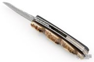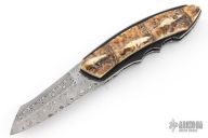 "I started making knives over 30 years ago while at University. My first knife was a big Bowie made from a car spring and I obtained a piece of stag from the local zoo for the handle. I still have and treasure that first knife. In my younger days I was very involved in martial arts yet could not buy Japanese weapons to train with, so I made my own, a short sword called a "sai". My fellow students were enthralled and I began taking orders to make more. Although having earned two university degrees, I continued to make knives part-time, but it became such a passion that I left my profession and am now a full-time knifemaking artist. I have been a member of the South African Knifemakers Guild since 1985. Today I only make folders and automatics, using the best exotic materials such as mammoth ivory, pearl, damascus and damasteel. All my folders have fileworked liners and backstraps, each folder has a jewel inlaid somewhere on the knife as well as in the thumbstud."