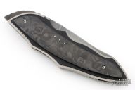 "I started making knives over 30 years ago while at University. My first knife was a big Bowie made from a car spring and I obtained a piece of stag from the local zoo for the handle. I still have and treasure that first knife. In my younger days I was very involved in martial arts yet could not buy Japanese weapons to train with, so I made my own, a short sword called a "sai". My fellow students were enthralled and I began taking orders to make more. Although having earned two university degrees, I continued to make knives part-time, but it became such a passion that I left my profession and am now a full-time knifemaking artist. I have been a member of the South African Knifemakers Guild since 1985. Today I only make folders and automatics, using the best exotic materials such as mammoth ivory, pearl, damascus and damasteel. All my folders have fileworked liners and backstraps, each folder has a jewel inlaid somewhere on the knife as well as in the thumbstud."