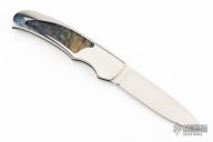 "It started with a piece of steel and some micarta in the back of my father's shop in 1975. I suppose I would be horrified by that first knife now. It was a rough piece of work with more things wrong than right, but that first ungainly knife did ignite something in me, and that something still burns over 45 years later. Like everything, my interests have evolved over time. The early 90's were a turning point in my knife making, with my focus turning toward folding knives and the interframe type of knife. Adding stone inlays to my knives required that I add a new set of skills to my knife making, and rekindled my passion as well. Time marches on, and two decades later I find myself once again evolving, reworking my designs to include the larger pocket knives that my customer's are now asking for. Whether fixed blade or folding, making knives is what I do."