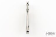 This Eagle Scout lockback from Rick Genovese features a hand rub satin finished blade with hollow grind, and crowned blade spine. The handle has a mirror polished 416 stainless steel frame with Pietersite inlays. Blade is centered when closed and locks up with no play. Knife comes with a leather slip sheath. Very nice work! Has some light scratches on the frame. Excellent condition.