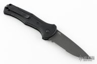 An explosive design, bound to take the battlefield by storm. The 9070SBK Claymore is a slender push-button powerhouse, packed full of hidden features and inspired by one of the most notorious directional mines. Incorporating this air-hardening tool steel to Benchmade’s portfolio of premium materials, the Claymore blade has been crafted from CPM-D2 to provide ample toughness and edge retention. Manufactured in the USA, the Claymore has set the standard for closed break strength making this Benchmade's toughest folder to date. Includes the original box and papers.  Excellent condition.