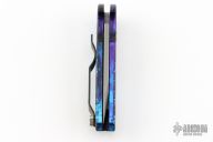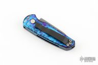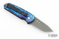 This Pro-Tech Runt 3 features a California legal 1.9375", 154CM two-tone satin/silver finished chisel ground tanto blade. Slightly lighter and more compact than the original Runt. Super spring action. Limited edition Jazz blue handle, with black tip up clip. Comes with original box and papers. Excellent condition.