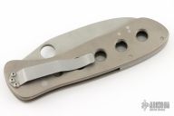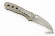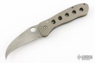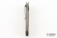This knife by Crawford Knives features a bead blast finished blade with thumbhole. The handle has a bead blasted titanium frame with a tip down stainless steel clip. Nice lockup and blade seating. Has scuffs and scratches, the tip is blunted slightly, otherwise good condition.