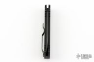 This TR-1 (Tactical Response) has a black chisel ground tanto blade with partially serrated edge. Has black aluminum handle with holes and a black stainless steel clip, tip up carry. Comes with original box and papers. Has a couple light scuffs, otherwise Excellent condition.