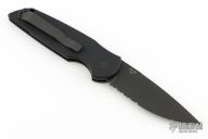 This TR-3  SWAT from Pro-Tech Knives features a drop point black finished 154CM blade with swede and partial serrations. The handle has a black aluminum handle with a matching stainless steel tip up clip. Comes with original box and papers. Has a couple light scuffs, otherwise Excellent condition.