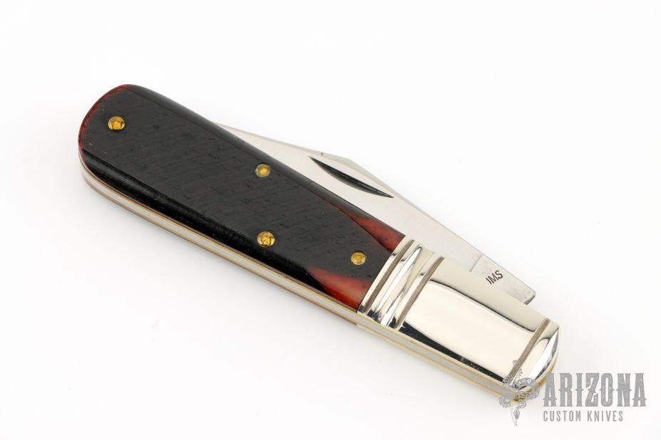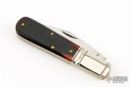 This Barlow from Great Eastern Cutlery features a satin finished clip point style blade with swede and nail nick. The handle has fluted nickel silver bolsters, sawcut hemlock bone covers over brass liners and stainless steel spring. Has Half-stop. Comes with original tube. Excellent condition.