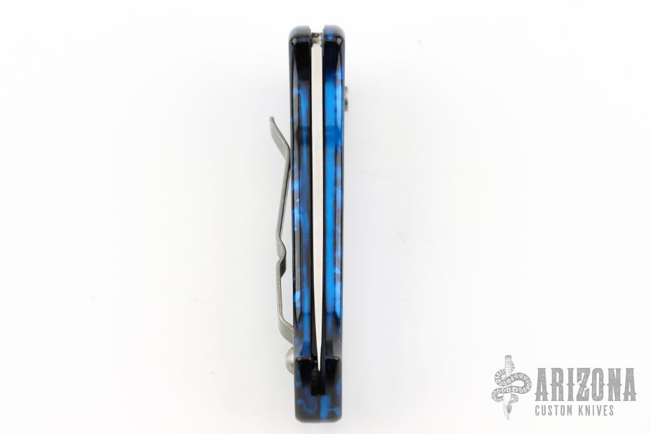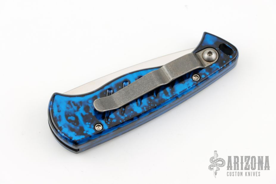 The Pocket by Piranha Knives features a mirror polished drop point blade with anodized aluminum handle with tip up titanium clip. Lanyard hole. Smooth opening, strong lockup. Excellent condition.