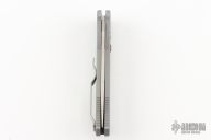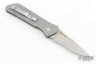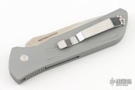This custom auto by W.R. Clark (DKD) features a satin finish blade. Destiny Pewter handle with milled design. Stainless steel clip. Very quick and strong coil spring action. Has a couple light scuffs, otherwise excellent condition. Includes original box.