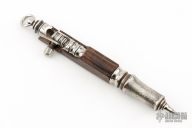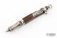 This Bolt Action Pen from Hidetoshi Nakayama features a wood and stainless steel grip and shaft, bolt action locking mechanism, and lanyard ring. Refillable - takes Caran d'Ache of Switzerland, Giant Cartridge Goliath, 8428.000 Medium Black refills. Excellent condition.