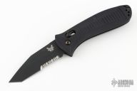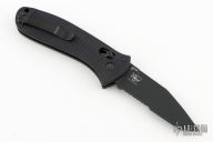 Mel Pardue design. Ambidextrous Auto Axis Pull Button Release - allows for automatic opening with either hand by pulling either Axis button back (buttons on each side of the handle). Integrated spine mount safety. Bi-directional machined handle grip for a superior sure grip. Includes the wrong Benchmade box (9530SBK), pouch, and paperwork. Has a couple light scuffs, otherwise excellent condition.