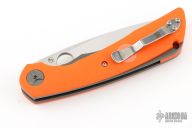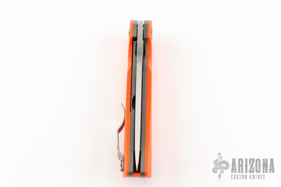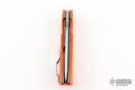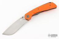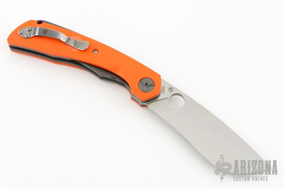 The Nati Amor designed Spyderco Subvert is a large folding knife revealed at Spyderco's 2018 Amsterdam Meet. This folder sports a clean, balanced aesthetic based on Nati's handmade Sabotage custom. It features orange G-10 scales over thick bead blasted titanium liners. Its blade has a satin finish, high flat grind, and a generously bellied edge. Add a unique Nati Amor design to your collection today! Features: A heavy duty titanium liner lock offers dependable blade lock up. Stainless steel clip for tip-up pocket carry. 3D textured G-10 handle scales provide a secure and comfortable grip. Excellent condition. Comes with original box and papers.