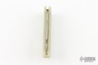This resurrection of the Jester is unique in two ways. First, its saber-ground PlainEdge™ blade is precision machined from Crucible® Industries' CPM® 20CV, a state-of-the-art powder metallurgy stainless steel that contains a high volume of vanadium carbides and the highest amount of chromium of any vanadium-rich stainless steel currently available. This sophisticated alloy composition gives it a remarkable balance of high wear resistance, superior corrosion resistance, good impact toughness, and excellent polishability. These properties are further enhanced by Crucible's state-of-the-art powder metallurgy process, which ensures a very fine grain size and uniform distribution of the alloys throughout the steel.