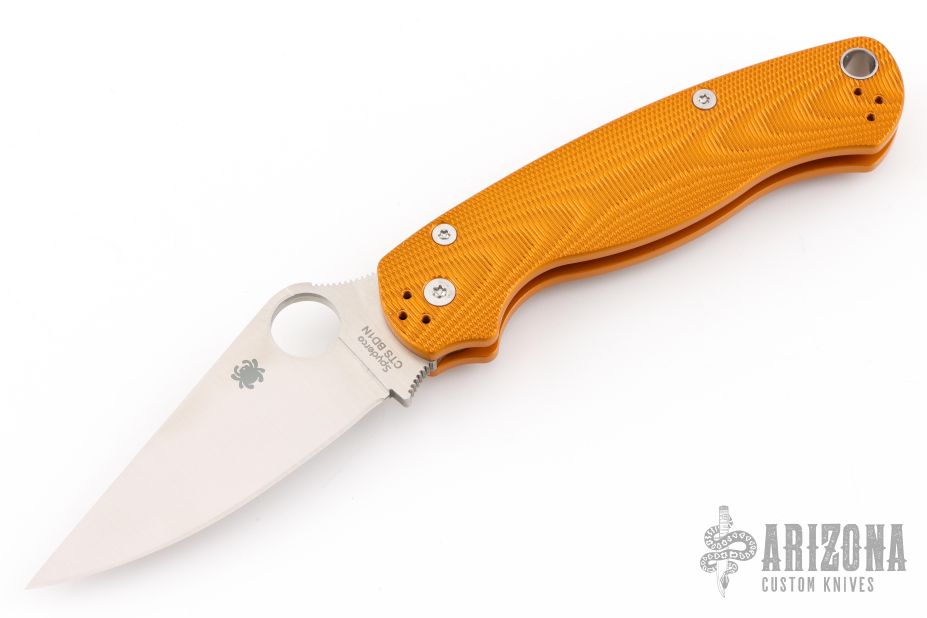 For many people, the PM2 is just about perfect. It would be easy for Spyderco to rest on its laurels, and continue to produce this icon of the knife industry as we all know it, but that's not the Spyderco way. Blade HQ and Spyderco have teamed up to take the Para 2 to the next level, with these anodized aluminum handle scales. Not only do they add a bit of strength, but because they negate the need for full steel liners, they make the knife a little bit lighter, too. We chose CTS BD1N blade steel, a very fine-grained steel that uses nitrogen to equally spread carbides, making for an incredibly sharp edge and good toughness.