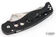 This ATR 2 by Spyderco features a satin finished 3.5" blade with thumbhole and notched thumbdisc. The handle has black G-10 scales with stainless steel liners and a tip up reversible black stainless steel clip. 8.5" overall and 5.125" closed. Nice detent, lockup and blade seating. Comes with original box and papers. New condition.