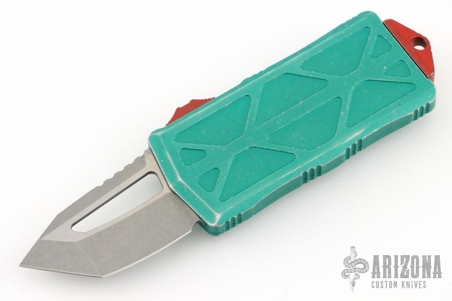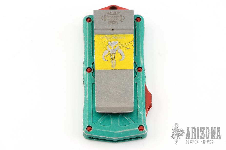 This Microtech Exocet features an apocalyptic finished tanto blade. The handle has a distressed green aluminum handle and a stainless clip that doubles as a money clip dated 02/2021, S/N 2690. Comes with original box and papers. Excellent Condition.