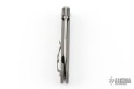 This Umnumzaan Framelock Folder by Chris Reeve Knives has a stonewashed/polished clip point blade with dual thumb studs and notched thumb rest. Handle is bead blasted titanium with titanium barrel spacer, titanium tip up clip, and lanyard hole with lanyard. Nice detent, lockup and blade seating. Comes with original box and COA dated September 30, 2020. Has scuffs/scratches otherwise the knife is in good condition.