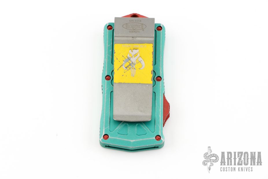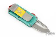 This Microtech Exocet features an apocalyptic finished tanto blade with serrations. The handle has a distressed green aluminum handle and a stainless clip that doubles as a money clip dated 03/2021 S/N 4314. Comes with original box and papers. Excellent Condition.