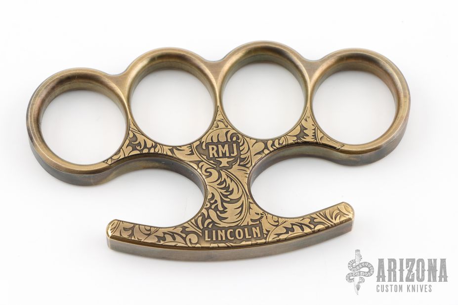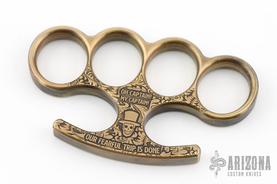 The Gold Point Lincoln comes straight from Ryan's shop, from the depths of the GPF R&D Rapid Prototyping and Hammock Devision. The Lincoln is a historic Knuckle design patterened after the set Abe Lincoln's personal bodyguard used to carry around. The generous finger hole sizing keeps it in place for a wide variety of hand sizes, oversized enough to keep your fingers safe but allow the right amount of control. Overall streamlined design while still making sure the message is heard loud and clear. One of the changes on the Lincoln is that since they come from the GPF R&D PRHD, this allows smaller batches of them to get made on the quick in small batches from different materials and with unique motifs and finishes!