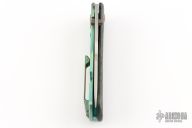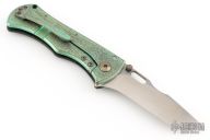 This Rostrum by John Gray features a satin finished Magnacut blade with thumbstuds and thumbhole. The handle has a carbon fiber and bark finished anodized titanium frame with a textured and anodized titanium backspacer and matching titanium clip. Has a stainless steel lockface insert and overtravel stop. Nice detent, lockup and blade seating. New condition. Comes with a zippered case. Comes with COA