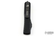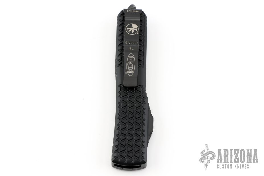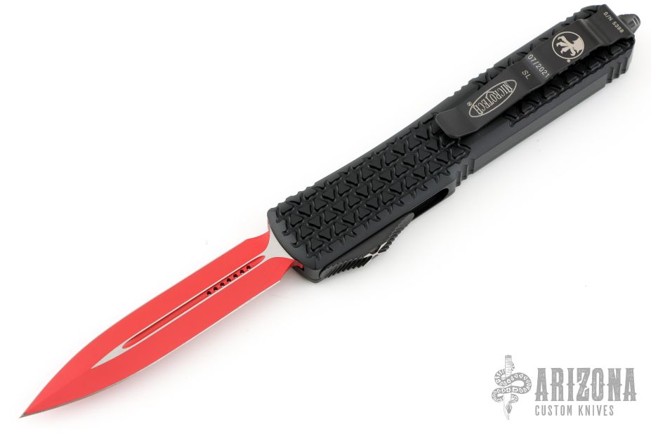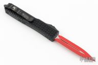 This Ultratech OTF automatic by Microtech features a D/E red blade. Black aluminum contoured frame with black tip down stainless steel clip. Dated 07/2021 and s/n 5398. Excellent condition. Includes original box and papers.