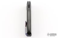 This Button Lock Folder by Frank Landau features an acid washed blade with notched thumbrest. The handle has a milled black aluminum frame with tip up anodized titanium clip. Nice lockup and blade seating. The button must be pressed to open and close the knife. Excellent condition.