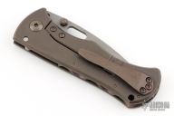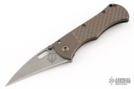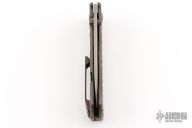 This Rostrum by John Gray features a tumble finished Magnacut blade with thumbstuds and thumbhole. The handle has an anodized and milled finished titanium frame with a matching backspacer and tip up titanium clip. Nice detent, lockup and blade seating. New condition.