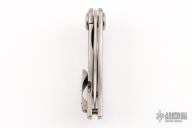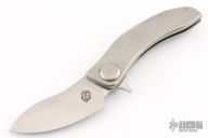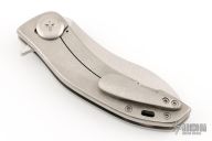 This Thuck Perversion by John Gray features a satin finished blade with flipper. The handle has a bark finished titanium frame with a matching tip up clip. Nice detent, lockup and blade seating. Comes with a COA dated 10-10-2020. Excellent condition.