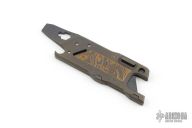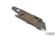 This TAD Gear/Rexford RUT (Rexford Utility Tool) uses a standard utility razor blade. Blade can easily be replaced. This piece features a functional lanyard hole, flat head screwdriver/pry tip, and bottle opener. The Triple Aught Design logo and topo graphic is laser etched into the titanium giving this piece a very unique look. Excellent Condition.