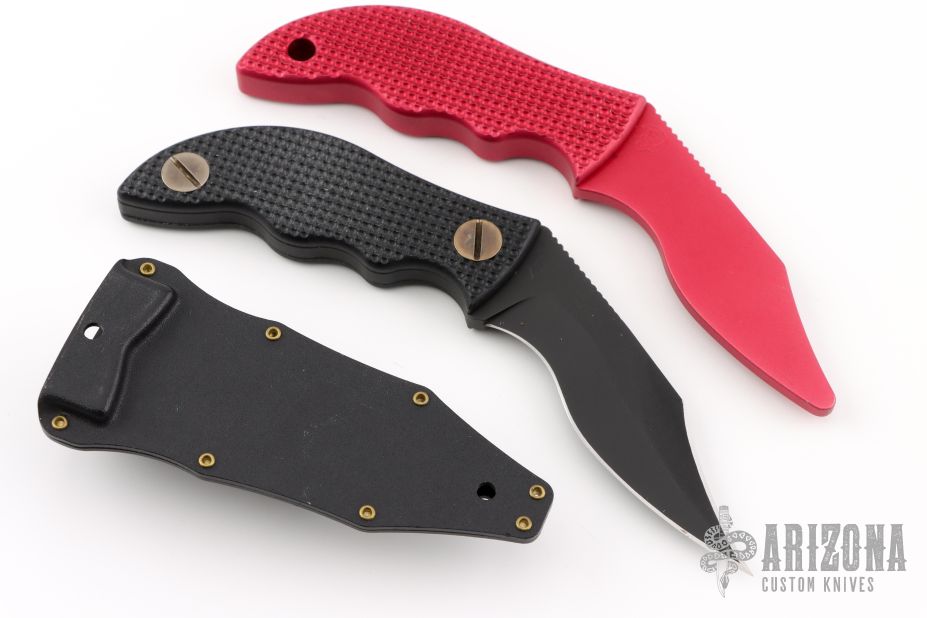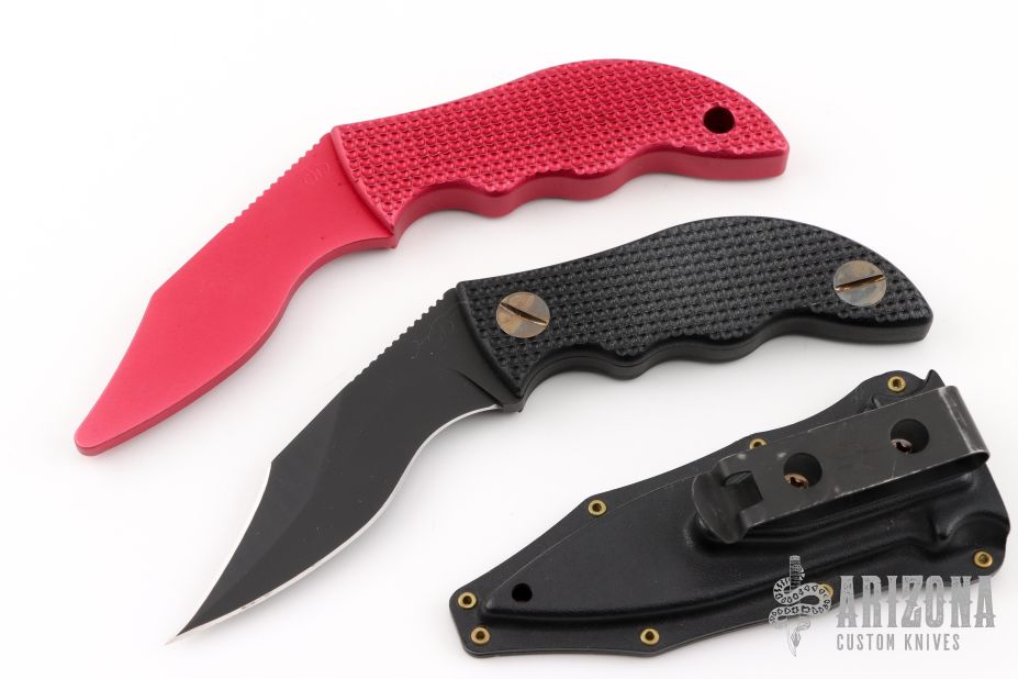 Comes with maker's card, ambidextrous sheath and red aluminum trainer blade. Excellent condition.
