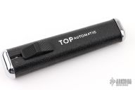 This Top Automatic features a polished drop point blade. The handle is plastic with metal end caps. Has some scuffs and scratches, great condition otherwise.
