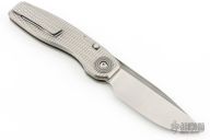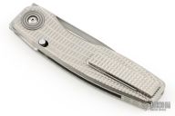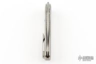 This FSD by Craig Brown Knives features a drop point stonewashed polish blade and notched flipper and fullers. The handle has a tumbled titanium frame with milling style #1, titanium tip up clip and backspacer. Nice detent, action, blade seating and lock up. Comes with original hard case with COA #086. Excellent condition.