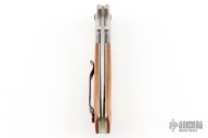 This fantastic piece features contoured wood handles, a black oxide pocket clip, anodized aluminum bolsters depicting a lush grassy field, and a satin blade with one of the most detailed laser engraving we've ever seen.