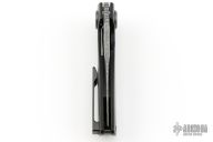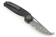 This Transient 2.9" flipper by Hellion Machine Collective features a Mike Norris Stainless Composite Ladder Damascus blade with notched thumbrest, thumbhole and flipper. The handle has a Westinghouse black paper micarta frame with tip up zirconium clip, zirconium screws and pivot, zirconium backspacer, zirconium pivot collars. Titanium inlaid lockbar. Nice detent, lockup and blade seating. Comes with cloth pouch and COA dated July 2023 Pacific Northwest Custom Invitational. Excellent condition.