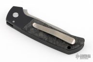 This ATCF Auto by Pro-Tech features a stonewashed Magnacut blade with notched thumbrest. The handle has a black aluminum frame with Dark Matter carbon fiber scales, tip up milled titanium clip with hidden screws. Comes with original box and papers. Excellent condition.