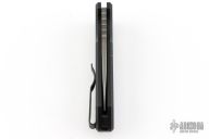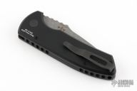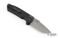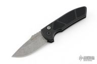 The Short Bladed Rockeye, or SBR for short, is a compact version of the outstanding full sized Rockeye Auto. Both knives are designed by Marine Corps knife designer Les George, who’s ergonomic hard use knives have been faithfully translated to automatic versions by Pro-Tech. The SBR features a compact design, with a 2.5″ blade that’s built for a multitude of cutting tasks. A pocket milled spine adds extra grip and depth to the design. The SBR features a solid black aluminum handle, blasted hardware, black DLC coated deep carry clip, and an acid washed blade, black lip pearl inlaid pivot. Excellent condition. Blade Show 2019 #49 of 100