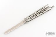 This Balisong by Benchmade features a satin finished double-edged Kris blade. The handle has stainless steel handles with has spring latch. Comes with original box and papers. Excellent condition. #061/100