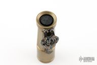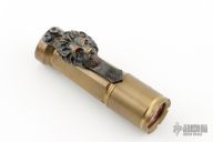 This Todai flashlight from Mitch Lum/Laulima Metal Craft and Joshua Dawson features a brass body with Steel Flame pocket clip. Nichia 219C 4000k primary LED. Driver: Dragon. Carclo. Flat sapphire watch "glass" window. Prometheus Darkness Sucks switch. Uses a single 18350 battery. Comes with a soft pouch. Excellent condition.