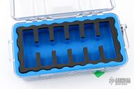 Designed to fit 6 custom CR123 size flashlights. Available with solid Black lid or Clear lid.