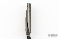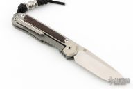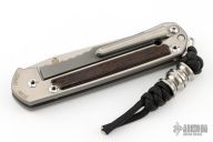 This 2011 Large Sebenza by Chris Reeve Knives features a satin and tumble finished blade with notched thumbrest and anodized titanium thumbstud. The handle has a satin and blasted titanium frame with Wenge wood inlays that have 18k gold and Argentium silver dot inlays. Nice detent, lockup and blade seating. Comes with original box, tool and card dated October 31, 2011. Excellent condition.