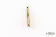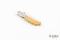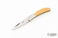 The diminutive Osprey™ an Al Mar Classic since 1979, offers timeless design and peerless craftsmanship usually found only on the finest custom hand made knives; all in the smallest, highest quality, front lock made today. The Osprey™ features a polished stainless steel blade with nail nick. The handle has stainless steel bolsters, yellow paper micarta scales, brass liners and a stainless steel backspacer. Has some light scratches, otherwise excellent condition. Comes with original box. 1979-1982