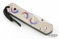 This large Sebenza by Chris Reeve features a satin polish finished blade with tumble finish flats and single thumb stud. "Unique Graphic" milled titanium frame with bead blasted edges, lockside, satin finished flats on the show side, with bead blast finished titanium tip up clip. Comes with a CRK replacement box, and Reissue card dated 4/18/2019 with approximate manufacture date of May-August of 2002. Also includes original lanyard post. Excellent condition.