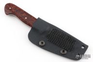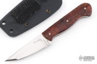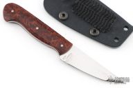 This Peshkabz by Bud Nealy features a compound ground hand rubbed satin finish blade with notched thumbrest, .105" blade stock and .891" blade depth, full tang construction. The handle has burl wood scales with mosaic pins. Includes kydex sheath. Excellent Condition. #8281