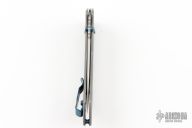 Featuring a milled titanium handle, the Narrows is as comfortable as it is lightweight. Measuring just over 4.5 inches long, your hand feels in control and never crowded as you set the Narrows to work. The vibrant blue anodized thumb studs, pocket clip, and hardware add a beautiful style to the pocket knife you'll treasure for a lifetime.