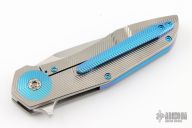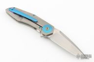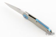 This Cluprit flipper from Steven Skiff features a hand rub satin finished blade with false top edge and flipper. The handle has a milled and bead blast finished titanium frame with anodized titanium tip up clip, pivot collars and backspacer, and anodized titanium hardware. Very smooth action with a nice detent, lockup and blade seating. Includes Maker's zippered case. Has a couple light scuffs, excellent condition otherwise.