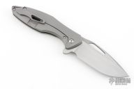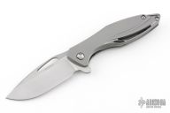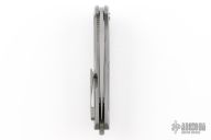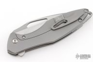 This Arius Style 55 Flipper by Koenig knives features a hand rub satin finished blade with thumbhole. The handle has a bead blasted and milled titanium frame with Style 55 Milling, titanium backspacer and tip up clip with hidden screws. Has ceramic bearings and a ceramic detent ball. Nice detent, lockup and blade seating. Comes with original box and COA dated April 26, 2023. Excellent condition.