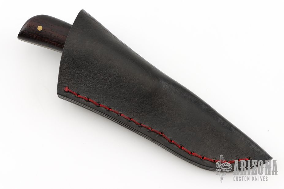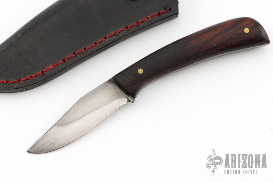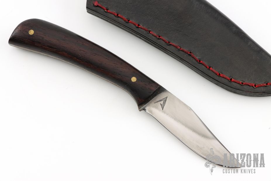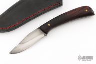 This Fixed Lanny's Clip by Last Knives features a hand rub satin finished blade with a nice hamon, .097" blade stock and .706" blade depth, full tang construction. The handle has rosewood scales with brass pins. Comes with a black leather sheath and COA. New from maker.
