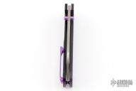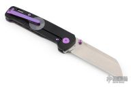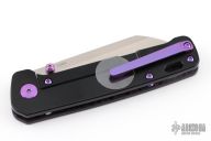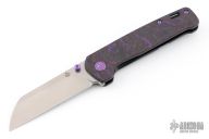 This QSP Penguin has a bead blast finished sheepsfoot blade with dual thumbstuds. The handle has a purple haze scale, black titanium frame with anodized tip up clip. Comes with original box and papers. Nice detent, lockup and blade seating.  Excellent condition.