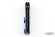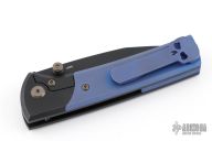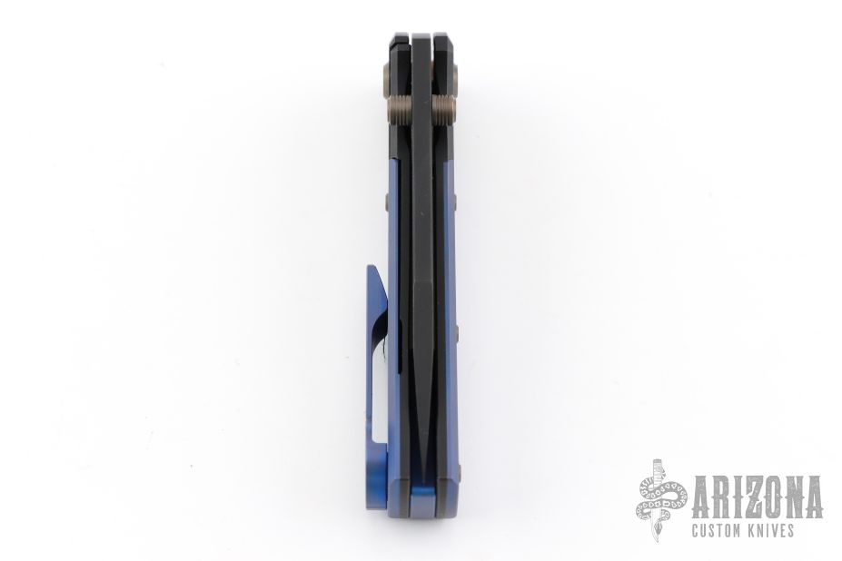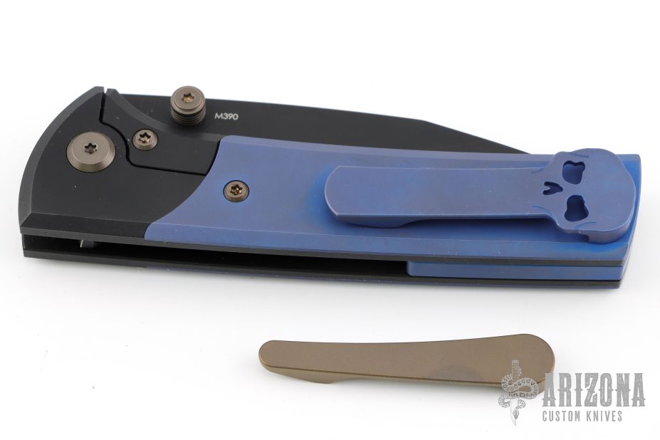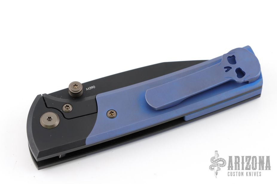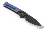This Chaves Scapegoat features a satin finished stonewash black pvd blade with the Chaves logo and dual thumbstuds. The handle has a stonewashed black pvd titanium frame, with anodized and stonewashed titanium covers, and a matching skull pocket clip. Includes an interchangeable titanium clip. Comes with original box and papers. Excellent condition.